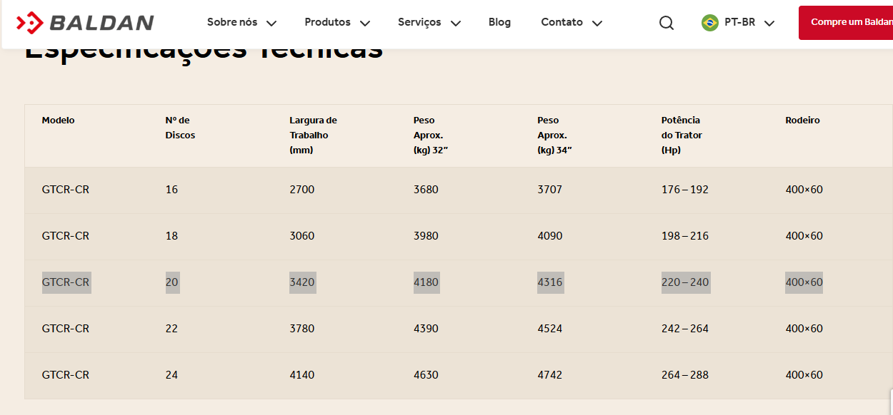 cod. 1340 GRADE ARADORA DE CONTROLE PESADA 20 X 34 BALDAN - Tk Tratores Nova Andradina-MS